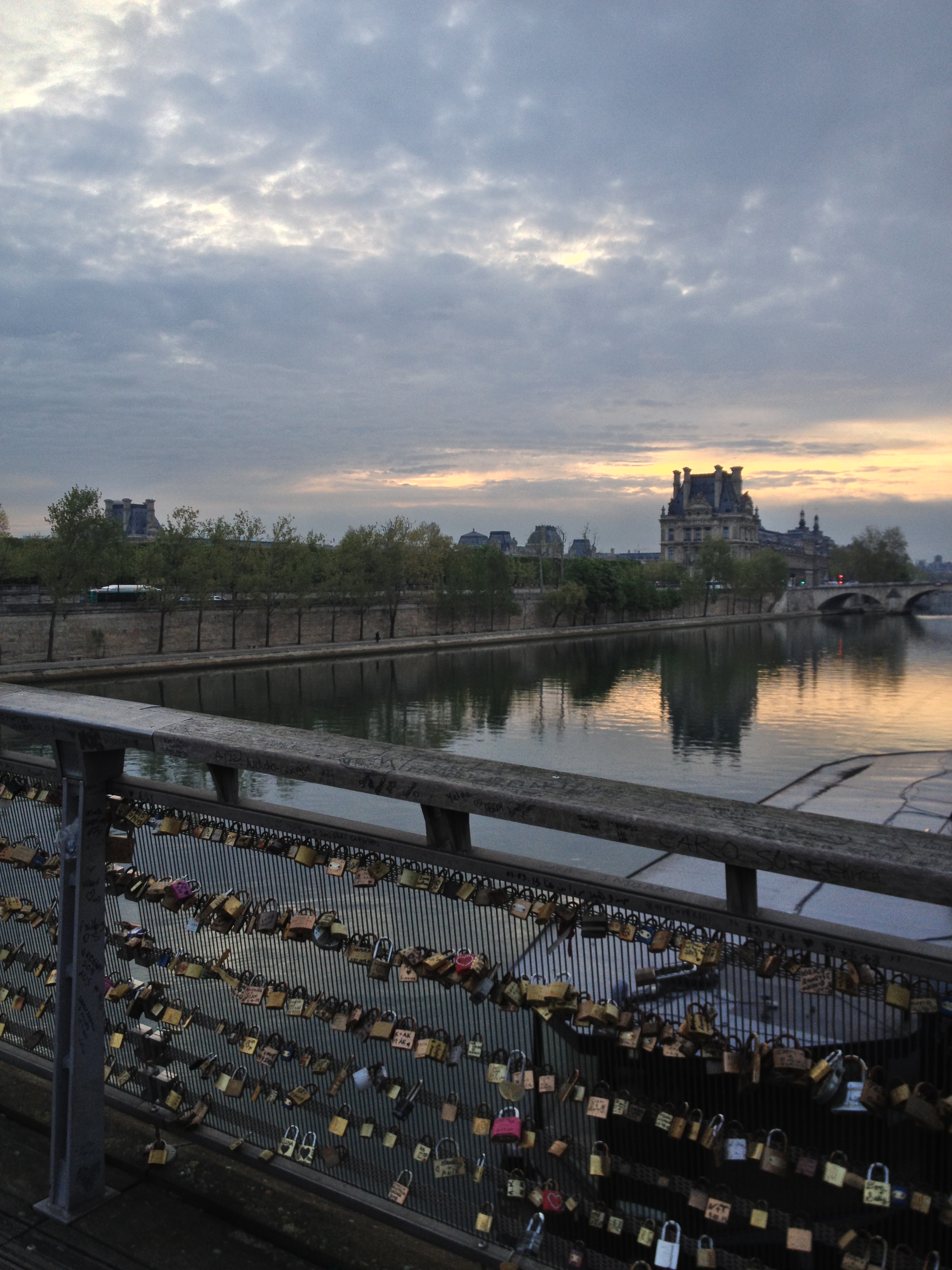 We still have some paperwork to do, but we’re settled. Phew. Our new path to school is in the picture — crossing the Soferino footbridge, as we head towards the Tuileries, with the Louvre in the background.