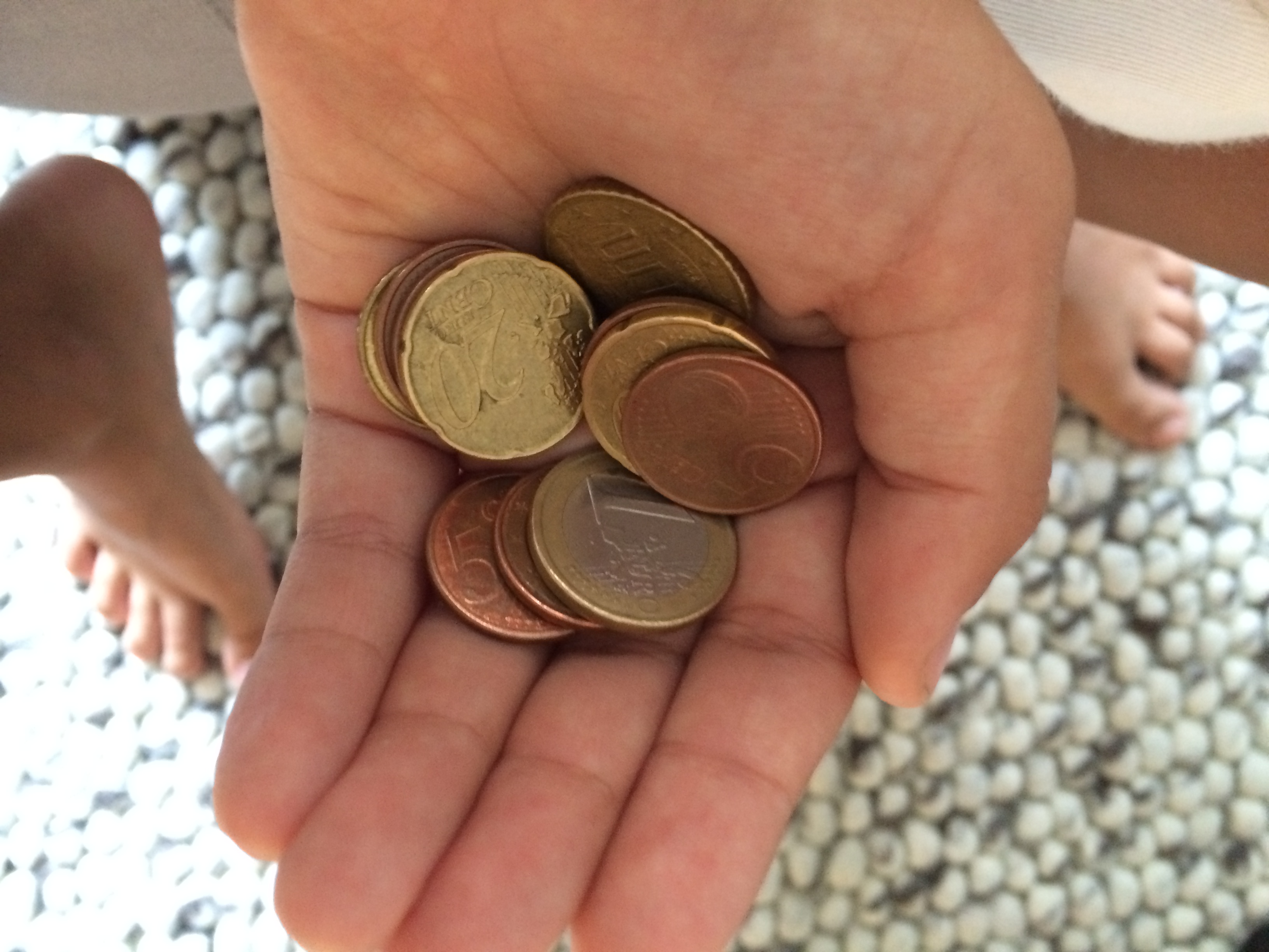 This is what I use in the morning to buy a croissant and a pain au chocolat. The simple two-hundred and thirty euro cent order of every day.