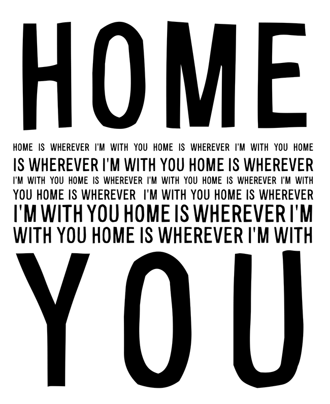 What do you define “Home” to be? I found this poster, which defines it as “Home is wherever I am with you”, inferring that because I’m with the family, I am “home”. That’s one definition. But if that were the entirety, it denies how much all the cultural ways in which home is also all the people around you.