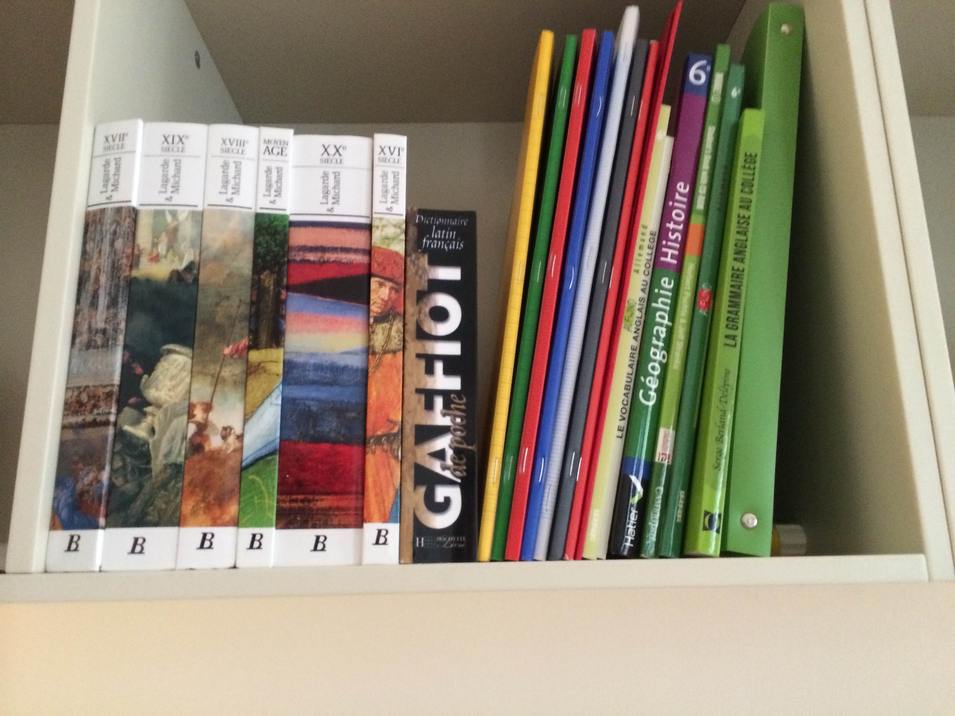 We couldn’t get any of my school books until Friday, which was orientation. We asked the principal in the morning and he told us to come back after orientation and pick them up. After orientation, we went to the schools supply shop and we got in line. It was about half an hour before anyone told us that the line was closed, and to come back at 1:30. So we returned later and got in line. Me and my mom waited no less then an hour until we got to the front of the line. And then the principal showed up and started talking to us. While that was happening, another family came by and took our place. Once they were out of the way, we asked for the supplies we needed for 6éme. She said that they only had one fourth of the supplies needed for our class, and told us that we were going to have to pick the rest up later. We thought that was fine, until we counted how many bags she was using. Three. And they were quite full. I mean, This is just the books.