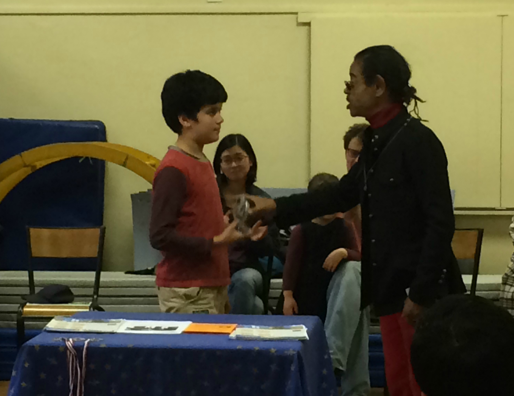 I was sitting in the tournament room in chess camp. Everyone had finished their games, and the professor was giving out the trophies. My Mom got into the room and I waved. She was standing there for about five minutes while the awards were being given out for this chess week. He had just finished giving out all of them. Well, almost all of them. He had skipped past the second place. Then he made an announcement. He went on about a special awarding of the trophies, and three kids told me it would be me. Obviously, I said that it wouldn’t at all (I had gotten a bronze medal [Last Place/Participation]). Then the professor continued. “I just witnessed this child win all his games in the other tournament.” . Wait. That was interesting. I did that earlier… “And the name is…… KiddoInParis!” (He didn’t really say that I just edited it for privacy.) Yay!