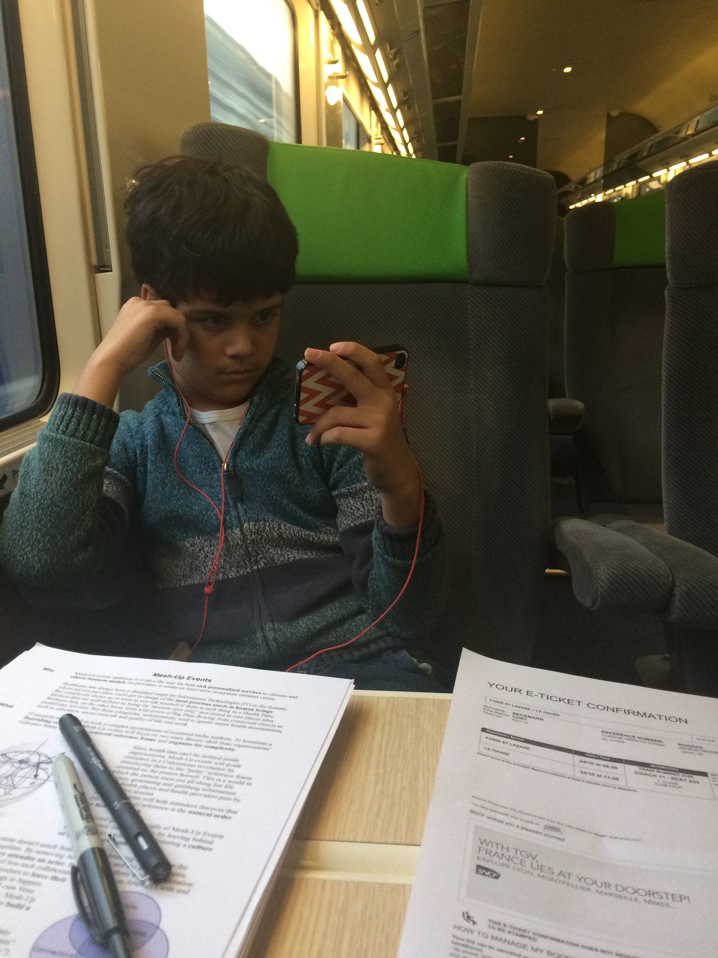 I passed the time researching some stuff for Book III plus also reviewing some other’s proposals. Kiddo loves train time, and he bums my headphones when he forgets his. When we get to La Havre, it becomes clear that we’re a little discombobulated. Curt has forgotten his California Drivers License (why carry it unnecessarily in your wallet?) and we can’t rent the car we planned on. Plus, we’re now well over a hundred miles from our hotel because we went to the “wrong” city from where we could have gone.