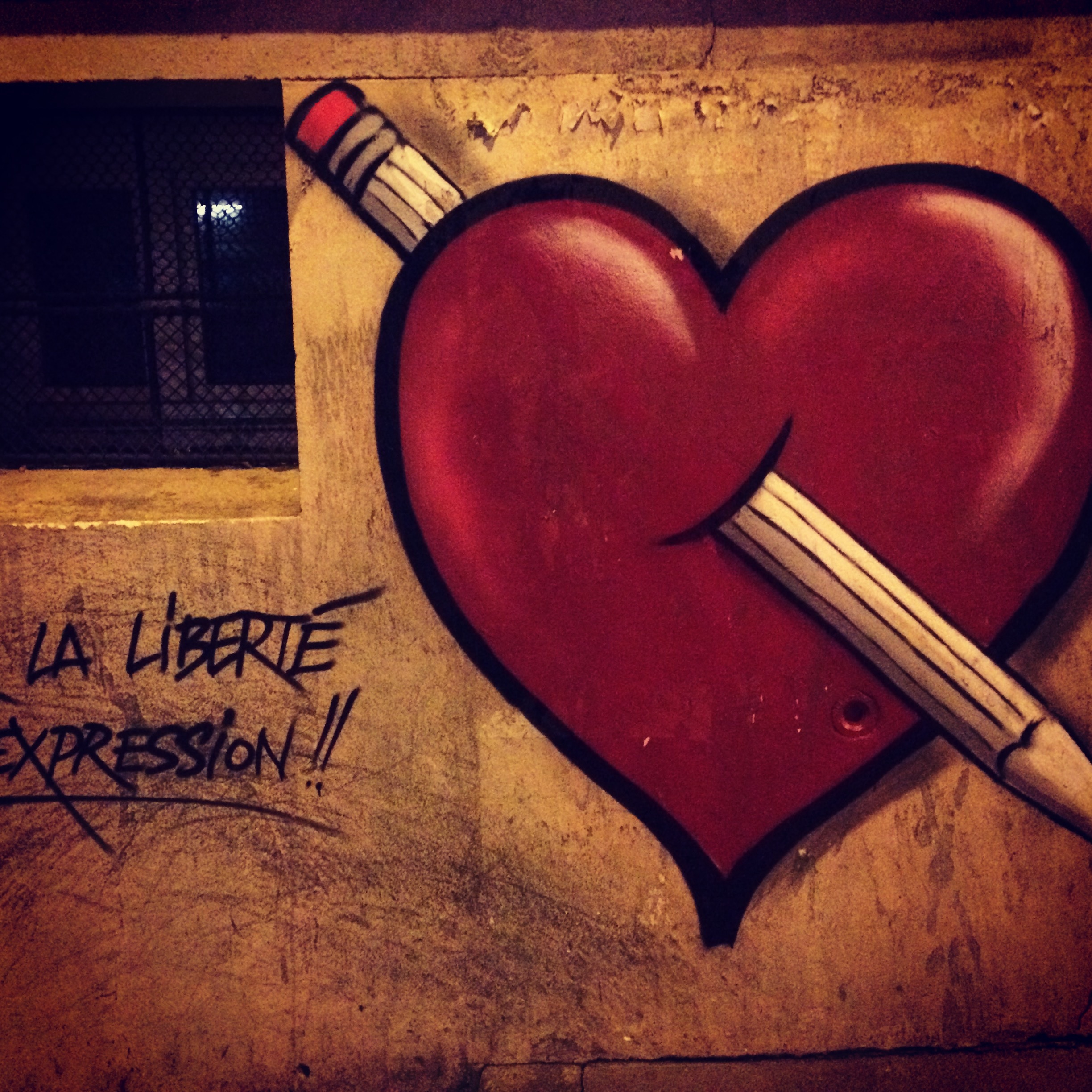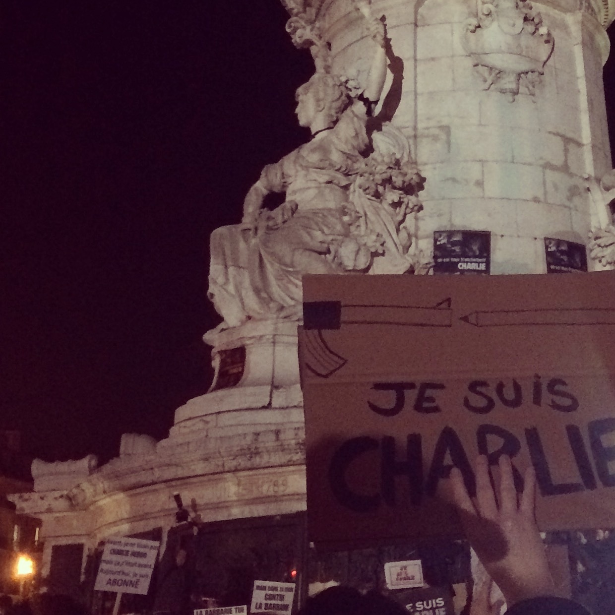 That night, we picked up Kiddo from school and took the 15 minute metro ride to the Place de La Republique. People were humming at times, chanting at others. It was just a bunch of people, self-organized, not the official march that would happen on Sunday. I remember one couple very solemnly holding some candles. We held up our pencils. When the crowd was singing together, I looked down to see that kiddo knew all the words. I later came to find out that what he and everyone else was singing was the national anthem,